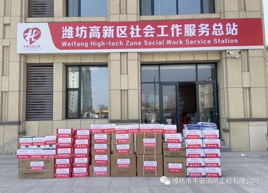 近日,我市疫情防控形式嚴(yán)峻,為全力支持疫情防控工作,以強(qiáng)烈的責(zé)任感、使命感和政治擔(dān)當(dāng),發(fā)揚(yáng)“一方有難,八方支援”的優(yōu)良傳統(tǒng),我公司積極采購抗疫物資和生活物資,攜手濰坊市建筑業(yè)協(xié)會(huì)、濰坊市志愿服務(wù)聯(lián)合會(huì)、高新區(qū)社會(huì)工作服務(wù)總站將防疫物品捐贈(zèng)到抗疫前線中,為我市抗疫工作奉獻(xiàn)愛心,貢獻(xiàn)企業(yè)力量。